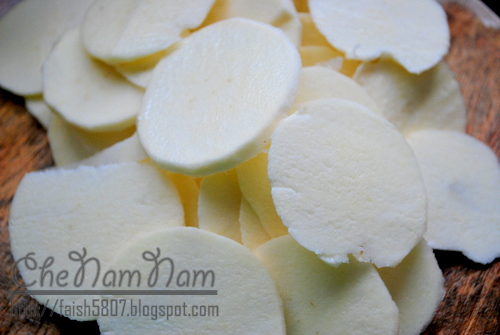 Dah siap kupas , putih bersih jerk.. Macam sengkuang pon ado jugak. Sengkuang version chomel..:P
